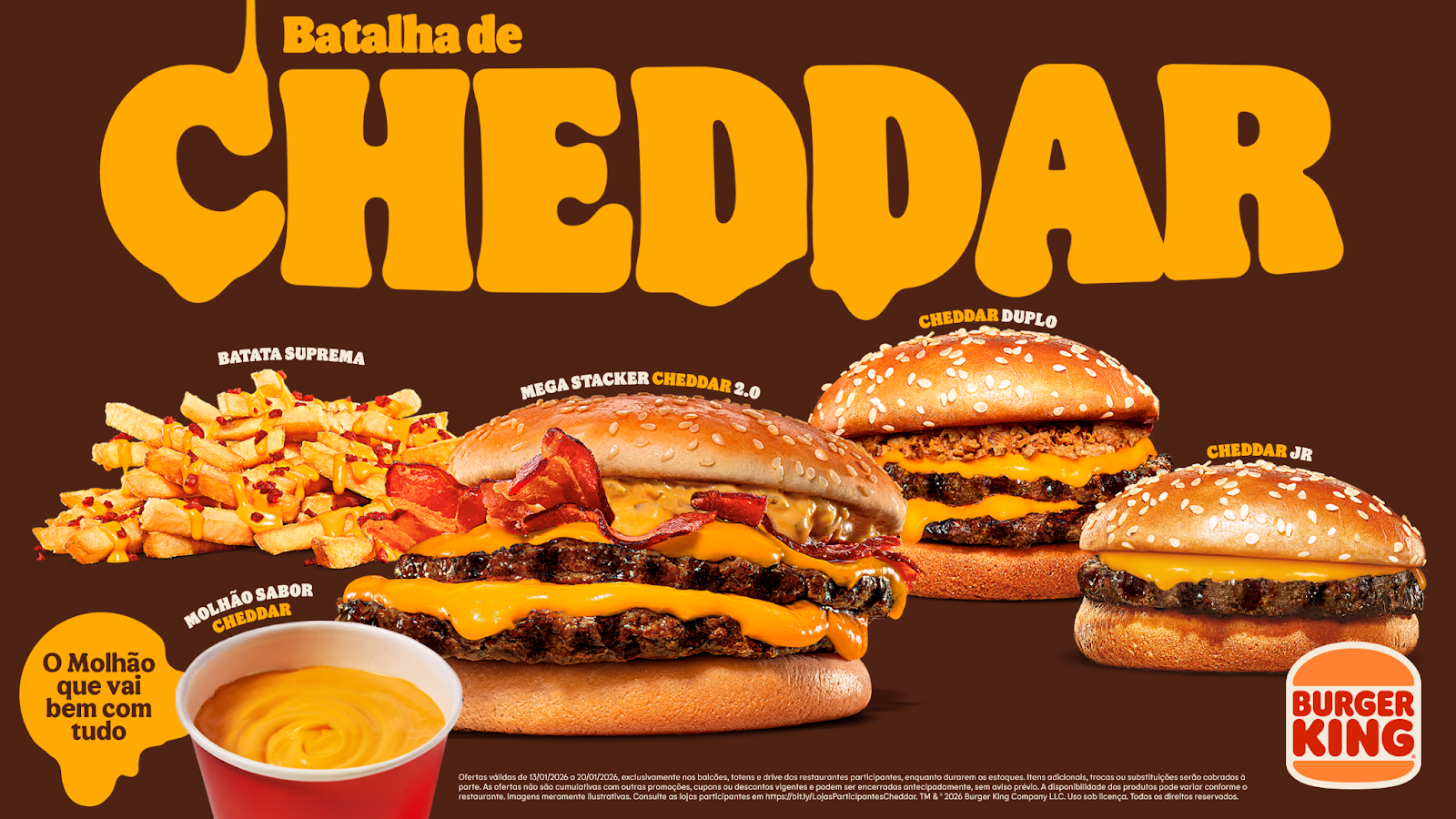 São Paulo, janeiro de 2026 – Em um cenário em que o mercado se aquece com diversas ofertas de produtos com cheddar, o Burger King® intensifica a disputa pela preferência dos verdadeiros fãs do ingrediente.