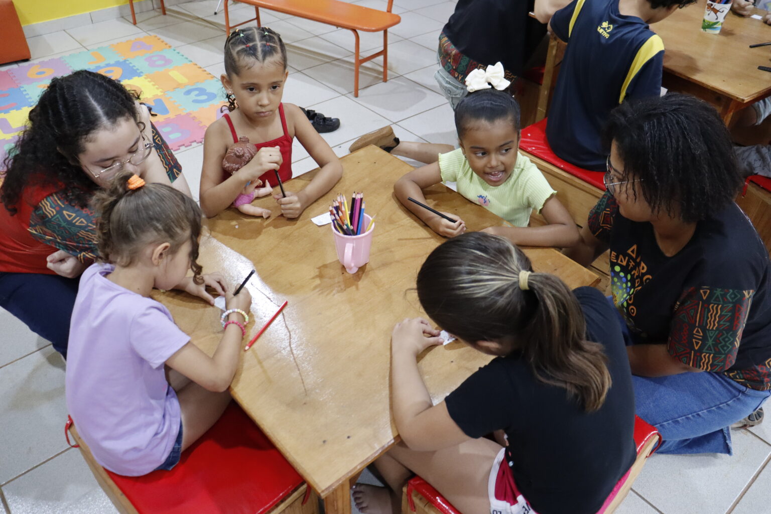 O livro “Como Encontrei a Alegria” conta a história de uma menina cuja mãe levava na escola um lanche delicioso para ela, e essa era a hora em que a garota se sentia mais feliz. Mas, de repente, aconteceu algo que mudou tudo. A atividade atraiu várias crianças, que se divertiram na Biblioteca Municipal. Além de ouvirem a história, elas participaram de uma atividade artística.
