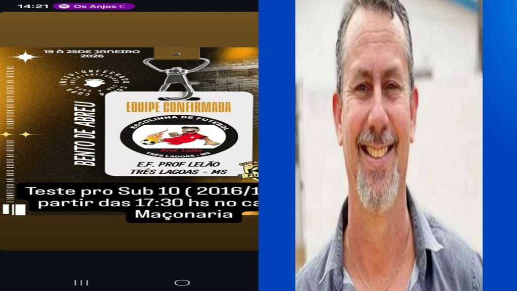 O Professor Lelis Rocha, o ‘Lelão’, convida pais ou responsáveis para levarem os jovens atletas para teste de futebol hoje (17) em Três Lagoas.