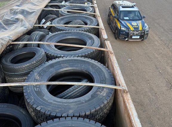 A Polícia Rodoviária Federal (PRF) apreendeu 240 pneus de origem estrangeira, nesta terça-feira (10), em Nova Alvorada do Sul (MS).