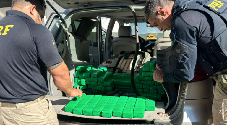 A PRF abordou o motorista de um SUV e, durante a vistoria, os policiais encontraram grande quantidade de maconha escondida em compartimentos ocultos no assoalho do porta-malas, nas laterais traseiras e nas caixas de ar do veículo.