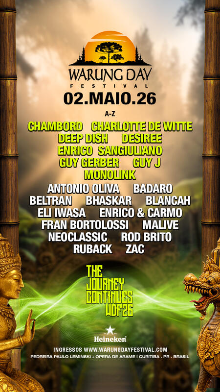 Entre os grandes destaques do WDF 2026 estão Charlotte de Witte, Deep Dish, Enrico Sangiuliano, Guy Gerber, Guy J, Monolink, Chambord e Desiree, artistas que representam diferentes vertentes da música eletrônica contemporânea e ajudam a construir um line-up diverso, consistente e alinhado à identidade do festival.
